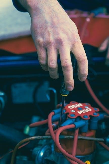Diagnosing engine misfires or rough running in the 17․5 HP Briggs and Stratton engine involves checking key components․ Inspect the spark plug for wear or fouling‚ and ensure the air filter is clean․ Faulty ignition coils or a clogged fuel filter can also cause misfires․ Consult the manual for specific diagnostic steps‚ such as testing the spark and fuel flow․ Addressing these issues promptly prevents further damage and ensures smooth engine operation․
